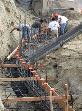 Conversely the foundation of some retaining walls is a row of caissons, connected together with a grade beam (concrete "beam" at grade).